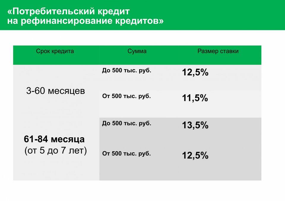 Сумма рефинансирования | От 50 000 до 5 000 000 рублей |
