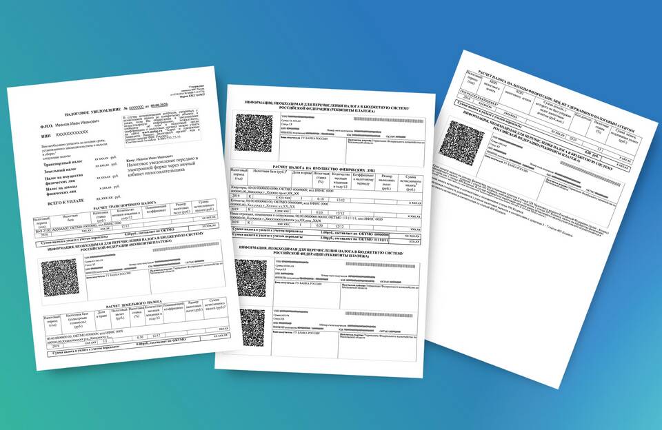- Уведомления об имущественных налогах (на квартиру, транспорт, землю)