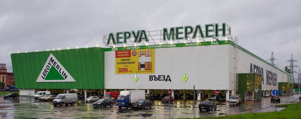 Большинство магазинов Леруа Мерлен расположены в шаговой доступности от станций метро или требуют одной пересадки на наземный транспорт:
