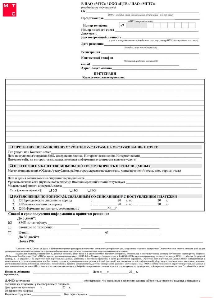 Обращение в салон МТС | Паспорт, договор (при наличии) |