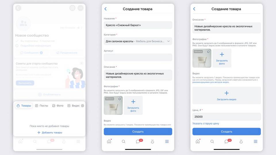 Физические товары | Требуют сырья, оборудования и складов | Одежда, мебель, техника |