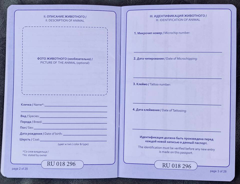 Официальный ветеринарный паспорт признается во всех странах и необходим для пересечения границ, участия в выставках и подтверждения здоровья животного.