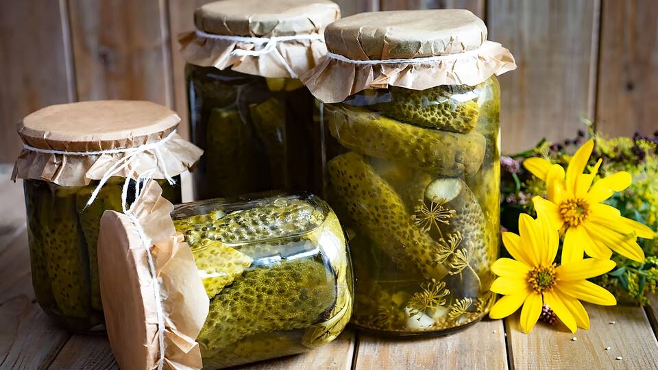 - Для хрустящей текстуры добавьте лист хрена или дуба