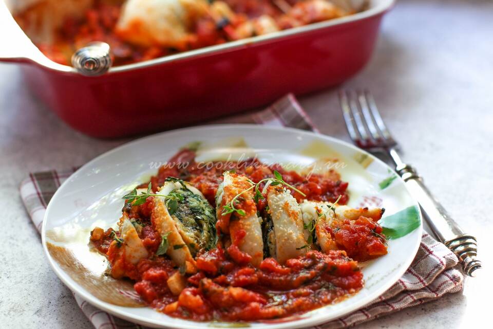 Фаршированные кальмары | Спаржа на пару, сливочный соус |
