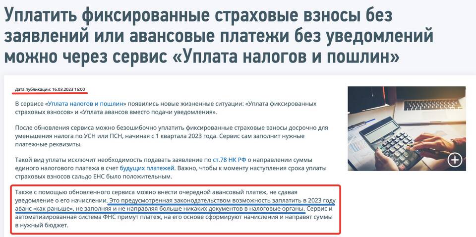- Уведомления об исчисленных налогах